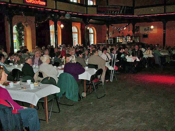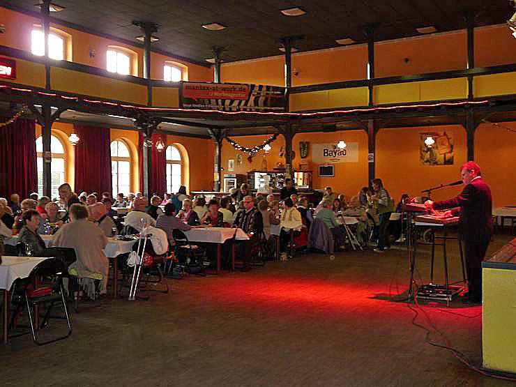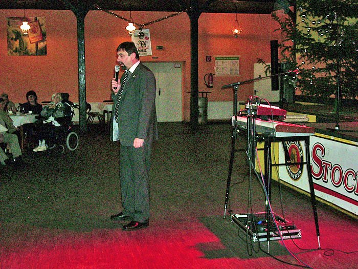 Nach dem Kaffee trinken, wie jedes Jahr wird die Feier von den Mitarbeiterinnen und Mitarbeitern der Stadtverwaltung liebevoll vorbereitet, kam Alleinunterhalter "Tasten Fuchs" aus Bremsnitz zu Wort, genauer gesagt zu Gesang. Damit der Kuchen besser verdaut wurden, servierte das Team um Uwe Makrinus einen Schluck Wein, oder waren es auch zwei?. Egal, die Stimmung war gut denn drinnen war es warm, während es draußen stürmte.