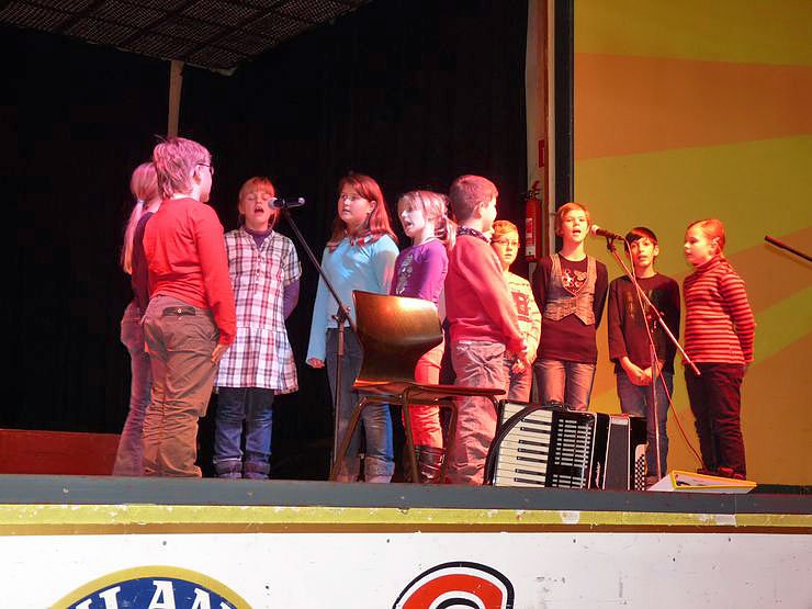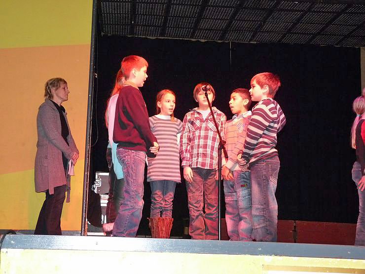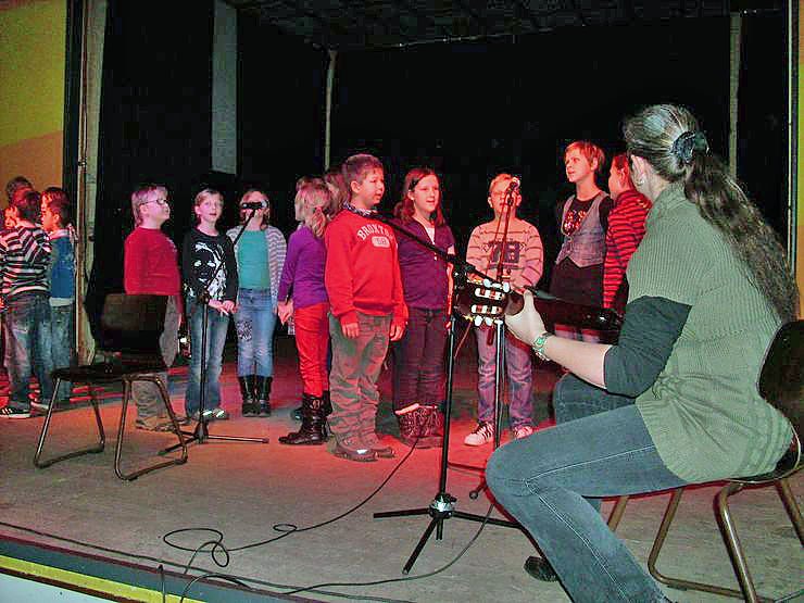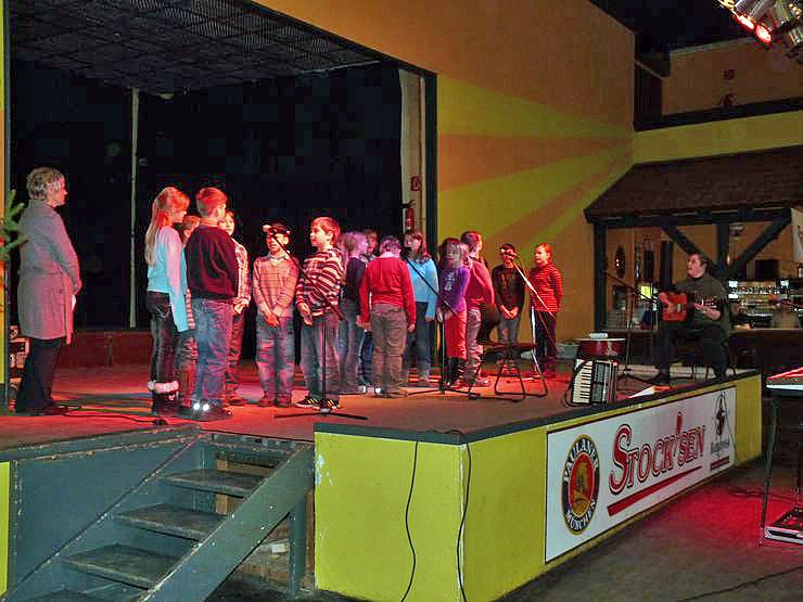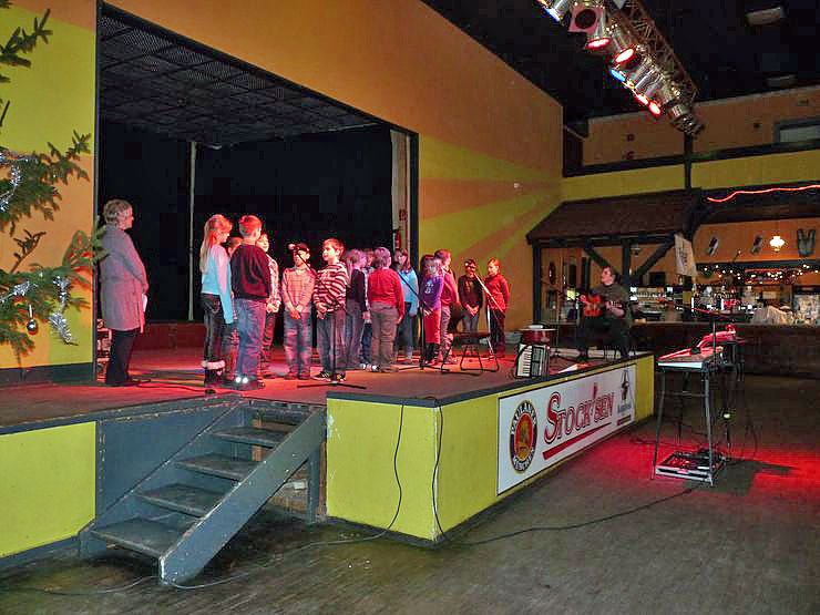Zur Einstimmung ging es natürlich weihnachtlich zu. Mit Lieder zur Gitarre von Musiklehrerin Manuela Hohm sangen die Schülerinnen und Schüler der 4. Klasse der Käthe-Kollwitz-Schule Sonderhausen weihnachtliche Lieder.