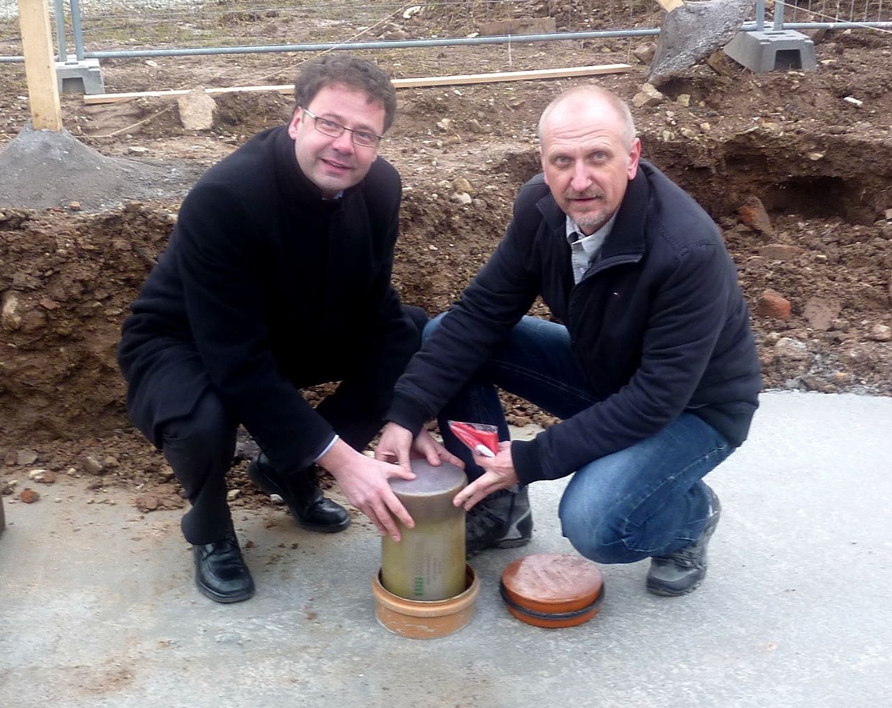 Für Bürgermeister Frank Rostek (CDU) war es ebenfalls eine angenehme Aufgabe, die mit Informationen gefüllte Zeitkapsel gemeinsam mit Herrn Dette versenken zu können. Er dankte ihm für die Verwirklichung des schon länger geplanten Vorhabens. Oberste Priorität für die Stadt Bleicherode ist es, noch weitere Firmen für die noch zur Verfügung stehenden freien Flächen zu gewinnen. Herr Rostek würde es sehr begrüßen, wenn die heutige Grundsteinlegung ein Startschuss in diese Richtung sein könnte.