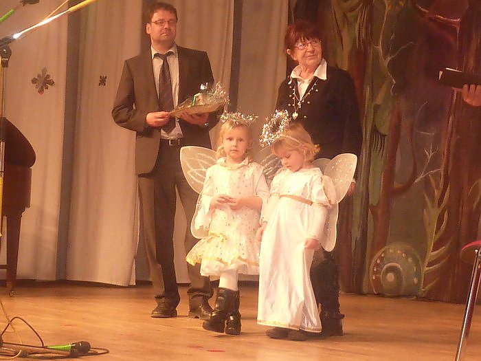 Der Bürgermeister überreichte mit Unterstützung von zwei kleinen Engeln für unermüdliche ehrenamtliche Tätigkeit je ein kleines Präsent an Inge Thiemt, Heidrun Tschee und Dieter Ebe. So wurde das Engagement von Frau Thiemt als Vorsitzende der Ortsgruppe Bleicherode des Bundes der Vertriebenen und Frau Tschee vom Ortsverband Bleicherode des VdK geehrt. Herr Ebe hat sich bei der Pflege des Spielplatzes am Schleifrasen besonders hervorgetan.
