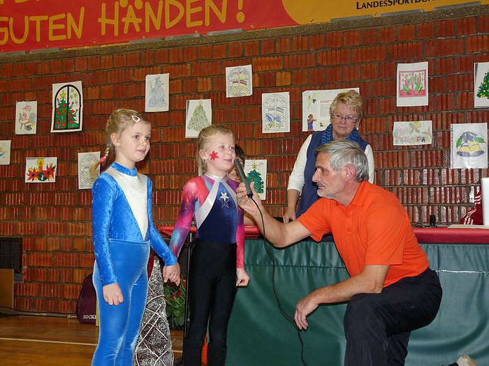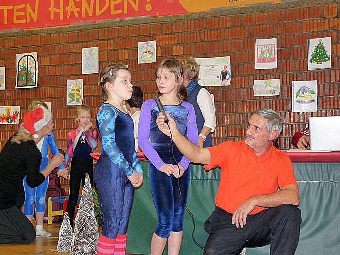 Aber nicht nur geturn und getanzt wurde. Heide Hofmann schaffte sich als Moderatorin und Werner Hofmann musste als Mikrofonhalter fungieren, da es auch Gesangs- und Rezitationseinlagen gab.