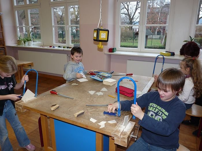 Das es den Kindern Spaß macht zeigt, wie sie gern ihre geschaffenen Projekte vorstellen. Die verschiedenen Gruppen sind mit allen Altersklasse von 1. bis 4. Klasse besetzt. Da sich die Kinder die einzelnen Gruppen aussuchen dürfen, gibt es an einer Infotafel ein richtiges Zeitmanagement, wie kn bereits im Herbst berichtete.