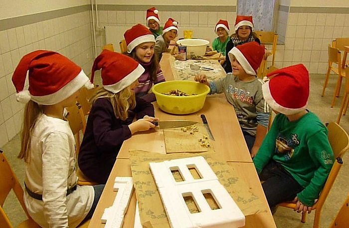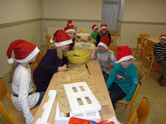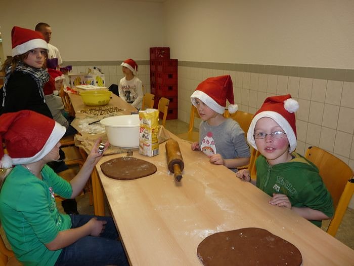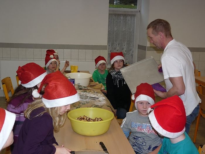 Was oft im Elternhaus aus Zeitgründen flachfällt, das Backen von Plätzchen. Hier können die Hortkinder es nachholen. Gestern hatte man sich sogar prominente Verstärkung geholt. Der Bäcker vom Ferienpark Feuerkuppe gab Unterstützung bei der Projektwoche.