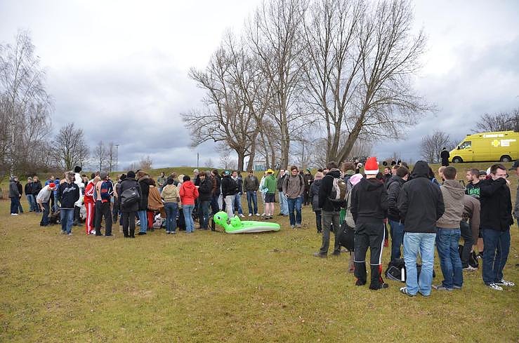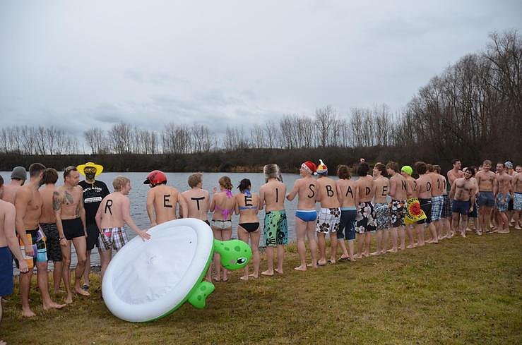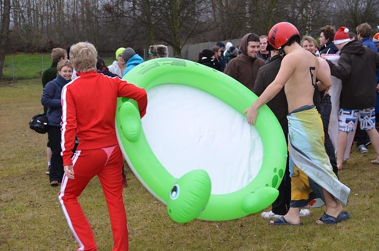 Es ist mittlerweile zu einer Tradition geworden - das Eisbaden der Studierenden der Nordhäuser Fachhoschule. Zum siebten Mal stürzten sich "Studs" und "Profs" in die kalten Fluten des Bielener Kiesteiches...