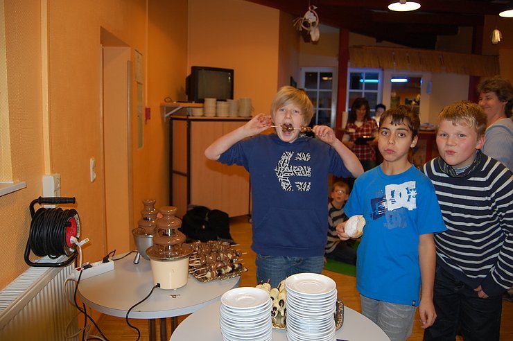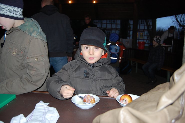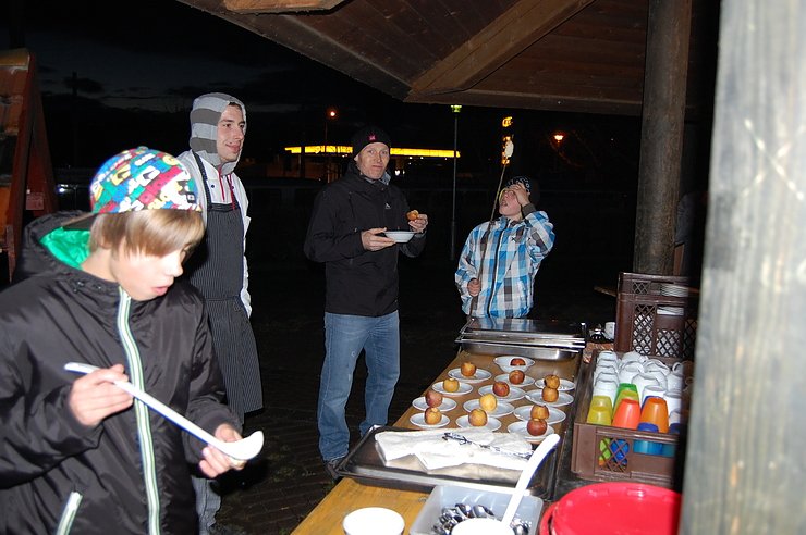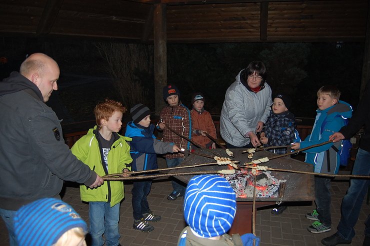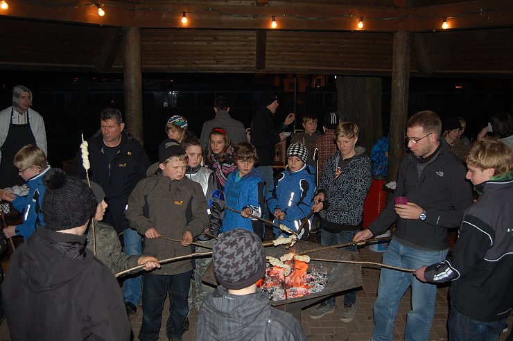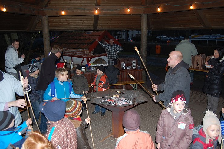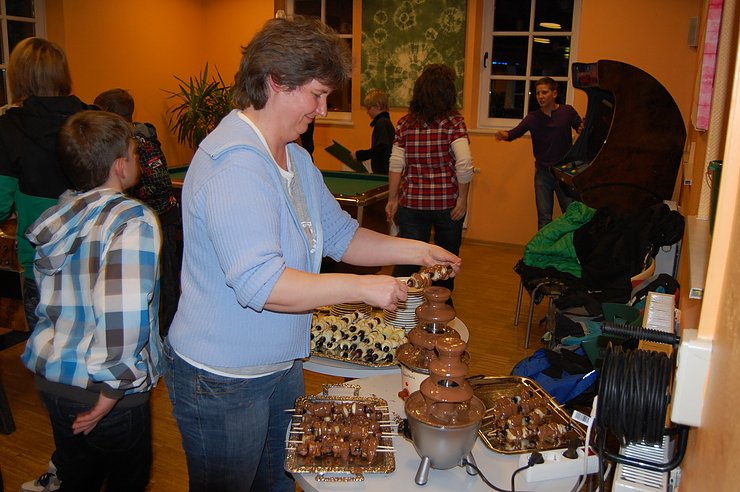 So wurden Weihnachtslieder gemeinsam gesungen, gebastelt und Geschicklichkeitsspiele durchgeführt. Für das leibliche Wohl wurde am Grillstand mit Bratäpfeln, Punsch und selbstgebackenem Brot gesorgt. Ein Schokoladenbrunnen mit leckeren Früchtespießen und Pfannkuchen waren bei den Kindern und Jugendlichen besonders beliebt.