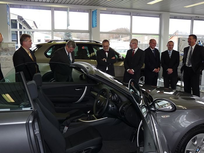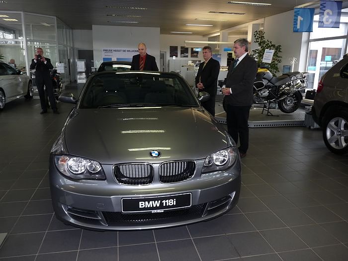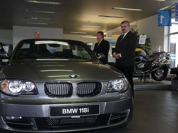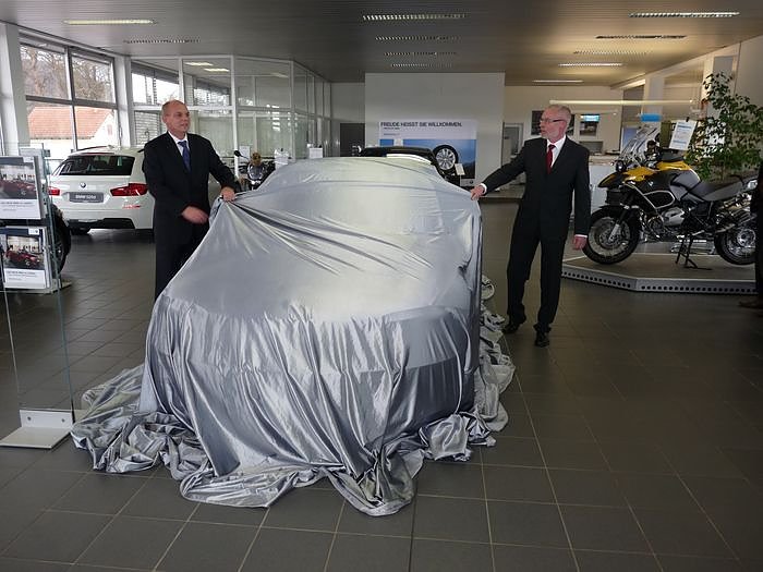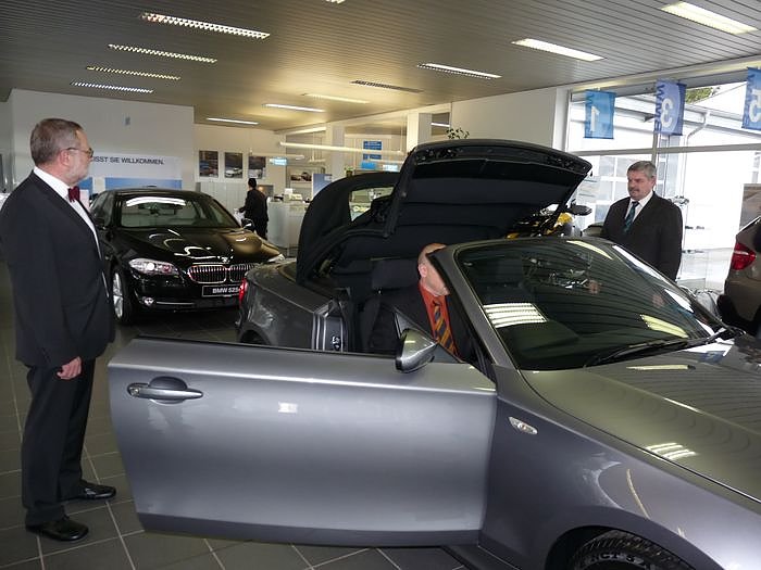 Landrat Peter Hengstermann (CDU) und Schuldirektor Norbert Höhne staunten ganz schön, denn das Fahrzeug war ein BMW Cabrio 118i.