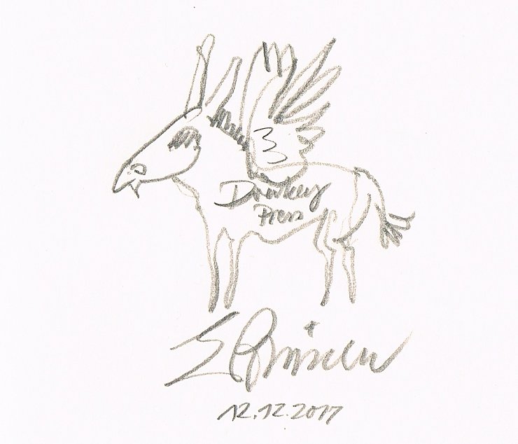 Wir hatten die Freude, den aufgeschlossenen Künstler persönlich kennen zu lernen und mit ihm und Frau Hoffrath von der USK, die die Ausstellung und den Vorlass betreut, die gezeigten Werke anzusehen. Der Leihvertrag wurde unterzeichnet, nun können die Illustrationen Prüssens im Kunsthaus im Original und die davon gedruckten Abbildungen in den jeweiligen Büchern gezeigt werden.