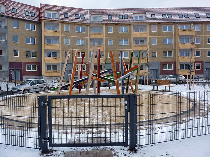 Ein besonderes Highlight stellt sicherlich das neue Spiel- und Klettergerät dar, dass von einem Künstler aus Thambach- Dietharz stammt, wie Wolfgang Menzel von Wohnungsgenossenschaft Glückauf zu berichten wusste.. Es wurde extra eingezäunt, damit die Kinder ungestört von Hunden spielen können. Bleibt nur zu hoffen, das die zugehörige Tür auch immer schön zu bleibt. Die Eltern sollte darauf achten und auch die Sprösslinge darauf immer wieder aufmerksam machen, dass die Tür auch wenigstens zu ist.