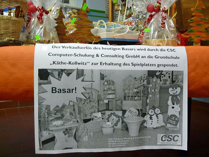 Entwickelt und gebaut hatte das Spiel die Firma CSC GmbH, die Lesern sicher als ein Schulungszentrum bekannt sein dürften. Am gestrigen Tag hatte man aber nicht nur dieses Spiel-Lernmittel übergeben. Man brachte Sachen / Spielzeug und ähnliches mit, um auf einem kleine Basar zu verkaufen und den Erlös der Schule für den Bau eines Kinderspielplatzes, kn berichtet bereits im Rahmen der Weihnachtsfeier der Schule.