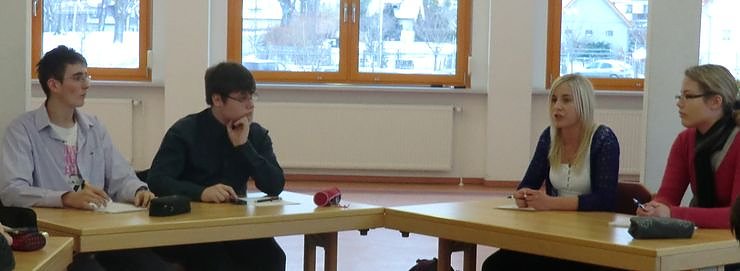 Ziel dieser Aktion ist es, die Kommunikationsfähigkeit der Jugendlichen zu trainieren. Die Beteiligten hatten einige Tage Zeit, sich inhaltlich auf die Themen der Debatte vorzubereiten. Die Schüler der Klassenstufen 8 und 9 diskutierten über die Frage: Sollen Jungen und Mädchen in manchen Fächern getrennt unterrichtet werden?. Dagegen debattierten die Vertreter der Oberstufe das Thema, ob auch in Deutschland eine Geschwindigkeitsbegrenzung für Fahranfänger eingeführt werden sollte.