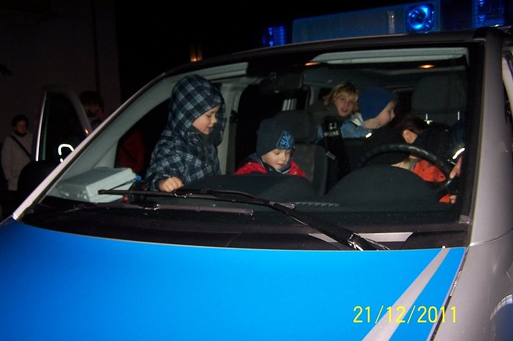 Bei dieser Gelegenheit gaben die Trainer, die hauptberuflich Polizeibeamte sind, einen kleinen Einblick in ihre berufliche Tätigkeit. Die Kinder hatten ebenso die Möglichkeit, Polizeiautos anzusehen und Ausrüstungsgegenstände auszuprobieren. Nach dieser Vorführung wurde sich dem eigentlichen Anliegen der Feier gewidmet. Die Kinder erwartete der Weihnachtsmann mit Süßigkeiten und kleinen Geschenken und sie trugen Gedichte und Lieder vor. Auf Initiative der Eltern erhielten die kleinen Fußballer einen Schal mit der Aufschrift Nordhäuser Jungs des FSV Wacker 90 Nordhausen. Dies war für alle Kinder eine gelungene Überraschung.