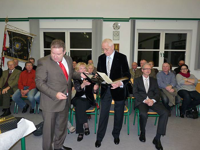 Nun sei zum Abschluss auch das Rätsel um die Zahl der Ehrenbürger verraten, den es sind deren gerade mal zwei, Dr. Günther Abel und Otto Thonhofer, Pfarrer im Ruhestand, die zum Glück kn auch vor die Linse bekam.