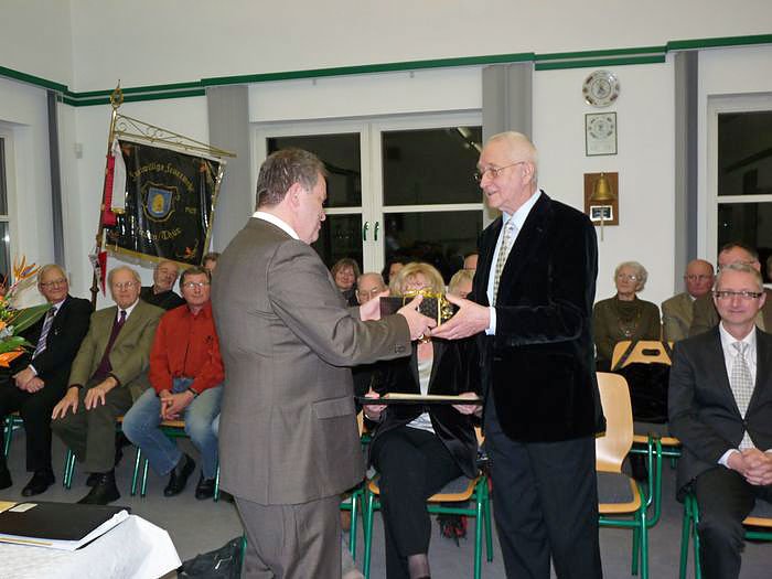 Bürgermeister Uwe Vogt (SPD) übergab Sanitätsrat Dr. Günther Abel die Ehrenurkunde als Ehrenbürger der Stadt Ebeleben. Ehrenbürgerschaft ist nicht mit Geld aufzuwägen, sagte Bürgermeister Vogt. Mit der Ehrenbürgerschaft wurde das Lebenswerk von Dr. Günther Abel gewürdigt. Er hat für die Gesundheit der Region Ebeleben und zeitweilig bis Keula und Großenehrich viel getan, so Vogt. Am 25.1.1932 in Guatemala geboren, weil seine Eltern damals dort arbeiteten. Deshalb spricht Dr. Günther Abel auch recht gut spanisch, wie Uwe Vogt verriet, ein Umstand den viele so gar nicht kannten.