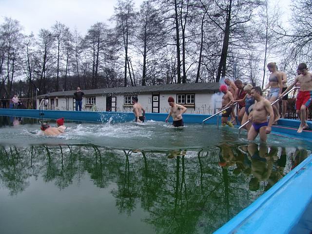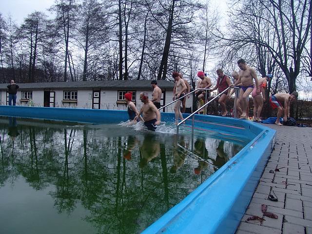 So geschehen am heutigen Neujahrtag: Zum bereits vierten Mal folgten Neujahrsbummler, Aktivisten und Schaulustige den Rufen nach wassersportlicher Herausforderung. Gelanden hatten Förderverein "Waldbad Neustadt" und DLRG Ortsgruppe "Hohnstein" zum traditionellen Anbaden in das schöne Freibad des Südharzstädtchens. Trotz miserabelster Wetteraussichten durften die Organisatoren fast 250 Gäste aus nah und fern begrüßen, um das Neue Jahr zünftig "anzuwässern".Es fanden sich immerhin 13 Damen und Herren, die das 4 Grad warme Wasser tüchtig aufwirbelten und sichtlichen Spaß daran hatten. Keiner hat es bereut, hatten doch einige ihrer Anbadepremiere sehr skeptisch entgegen gesehen. Unter dem Jubel der Umstehenden wurde mal wieder ein Zeichen gesetzt und das Neustädter Waldbad in den Mittelpunkt des öffentlichen und sportlichen Interesses gerückt.