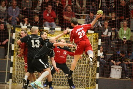 Wie verwandelt kamen sie aus der Kabine und setzten sofort Akzente. Sie knabberten Treffer um Treffer vom Vorsprung ab, ehe sie nach 20 Spielminuten den Anschlusstreffer zum 21:22, durch einen verwandelten Strafwurf von Sebastian Kreutz, erzielten. Die Halle brodelte förmlich und viele hielt es nicht mehr auf den Plätzen. Dazu trugen auch die Paraden vom Keeper Sören Ahlert bei, der für den ebenfalls stark haltenden Kay Näther kam.