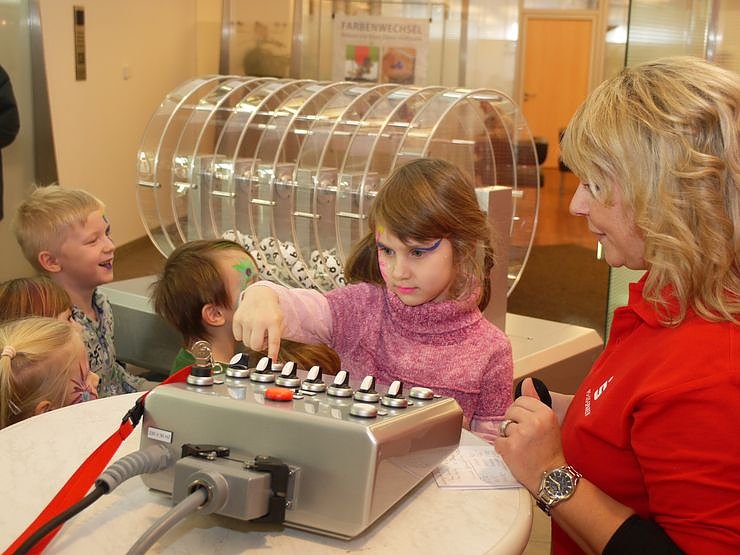 Der Ziehungsapparat war in der Kundenhalle am Nordhäuser Kornmarkt aufgebaut und Ziehungsleiterin Yvonne Bergmann führte professionell durch die Ziehung, die Aufsicht lag in den Händen des Thüringer Landesverwaltungsamtes. Die Gestaltung des Rahmenprogramm übernehmen die Kinder des Kindergartens "Brummkreisel". Für Sie gab es bunte Gesichter und kleine Geschenke. Glücksfee durfte bei dieser Ziehung die kleine Scarlett sein.