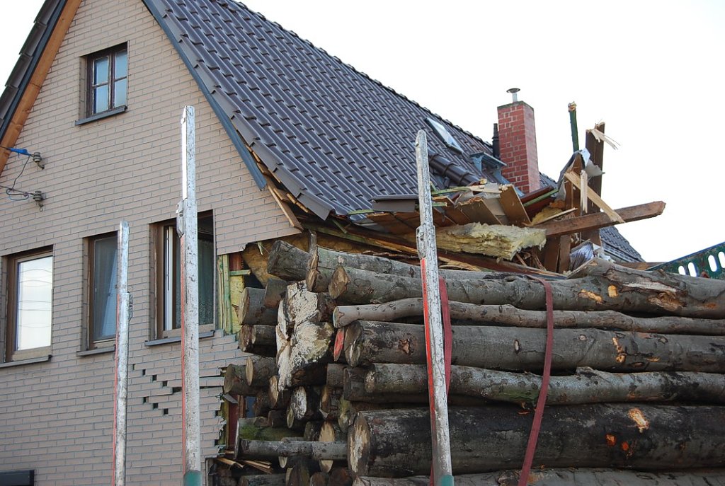Durch den Aufprall wurde eine Hausecke regelrecht weggerissen. Am übrigen Haus entstanden erhebliche Schäden. Das Haus ist akut einsturzgefährdet und muss zunächst abgestützt werden, bevor mit der Bergung des LKW begonnen werden kann. Dazu muss zuerst die Ladung umgeladen werden.