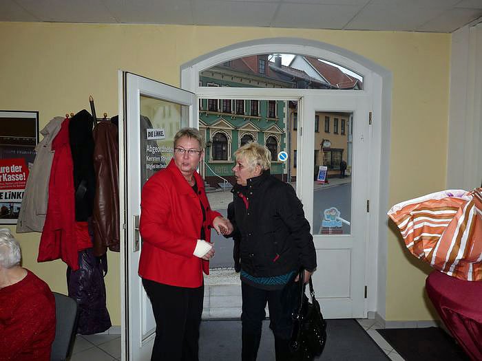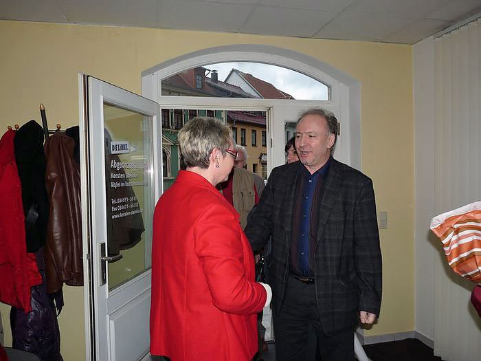In einer kurzen Rede wies sie auf die Schwerpunktaufgaben der nächsten Zeit hin. Im Vordergrund steht dabei die Wahl des neuen Landrates, zu der man ja erst jüngst mit dem Kandidaten der Linkspartei, Torsten Blümel, den ersten Schritt gemacht hatte. Aber auch der kommende Bundesparteitag in Göttingen sei eine wichtige Aufgabe in diesem Jahr.
