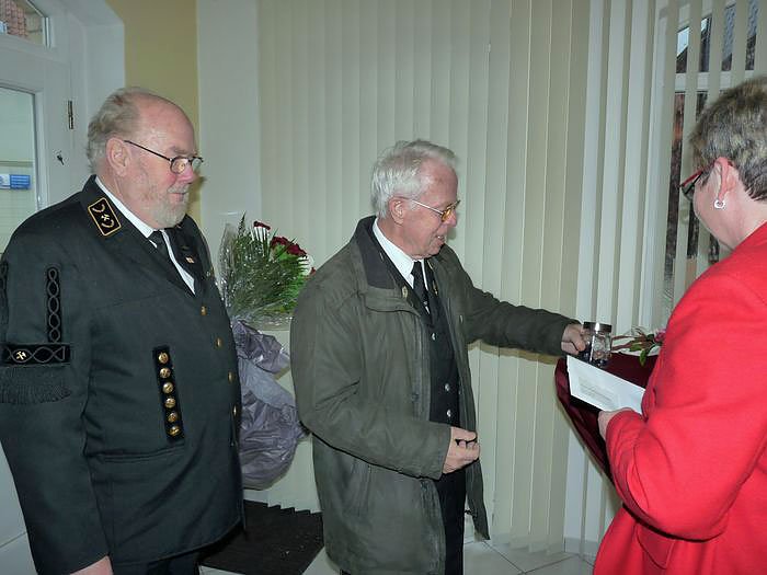 Die Linke will ihre gute Zusammenarbeit mit Vereinen und Verbänden weiter ausbauen und vertiefen. Traditionell beim Neujahrsempfang dabei sind die Mitglieder des Bergmannsvereins Sondershausen (oben). Kersten Steinke ist ständiger Gast wenn der Verein zum Bergmannsfest nach Sondershausen ruft. Als Gastgeschenk gab es heute ein Glas mit seltenen Salzkristallen.