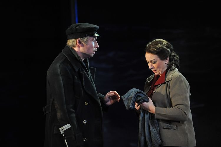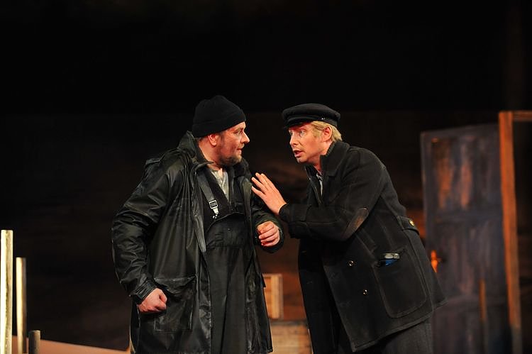 Joshua Farrier als eigensinniger Fischer Peter Grimes und Kay Stiefelmann als warnender Kapitän Balsrode
