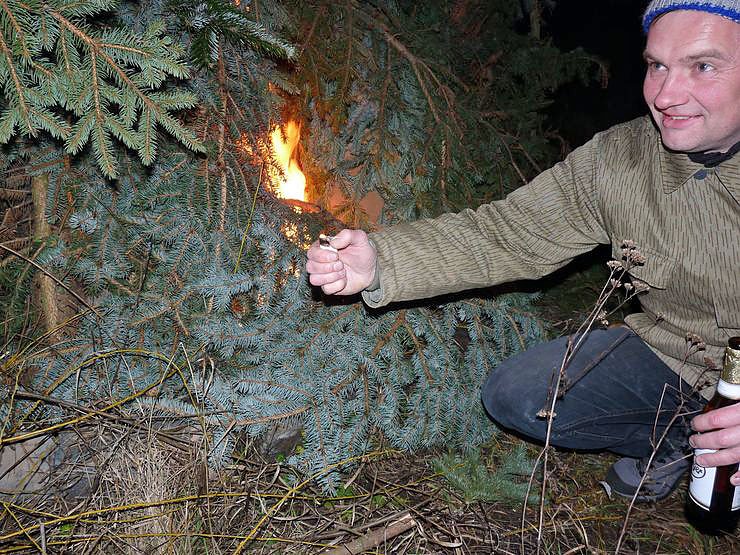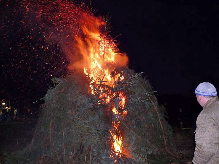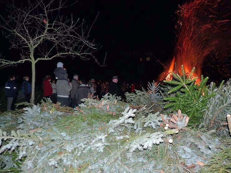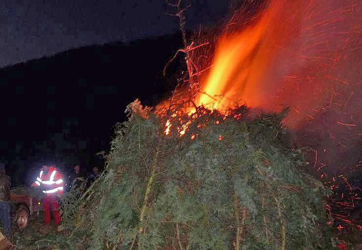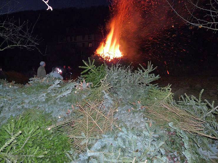 Weihnachtsbäume waren gestern genügend da. Neben dem eigentlichen Feuer lag ein Berg, dass man getrost ein zweites Feuer hätte zünden können.