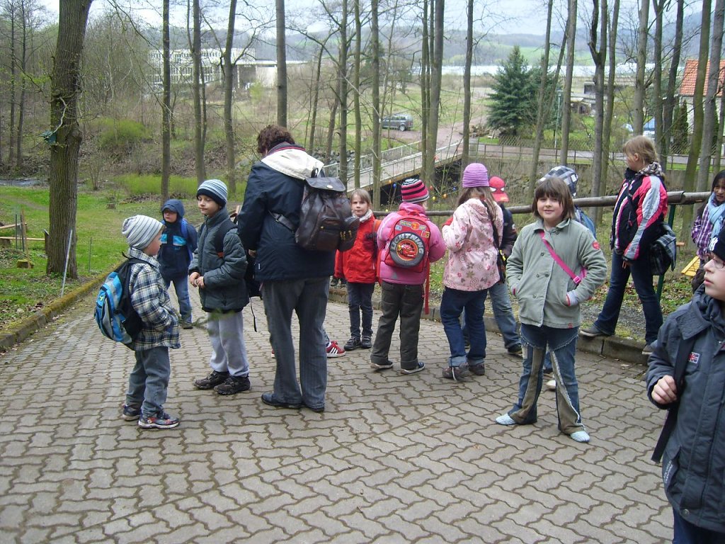 Nun ging es, gut vorbereitet in die dunklen Stollen des Bergwerks hinein. Fast am Ende der Bergwerksführung hatte der Osterhase im Bergwerk noch als Überraschung kleine Körbchen mit Ostereiern und Süßigkeiten versteckt. So ging dann langsam ein schöner erlebnisreicher Tag für die Hortkinder der Grundschule Niedersalza zu Ende. Freude strahlend und winkend gingen die kleinen und großen Besucher den Berg hinunter in Richtung Haltestelle oder Bahnhof um ihren Zug noch zu bekommen.