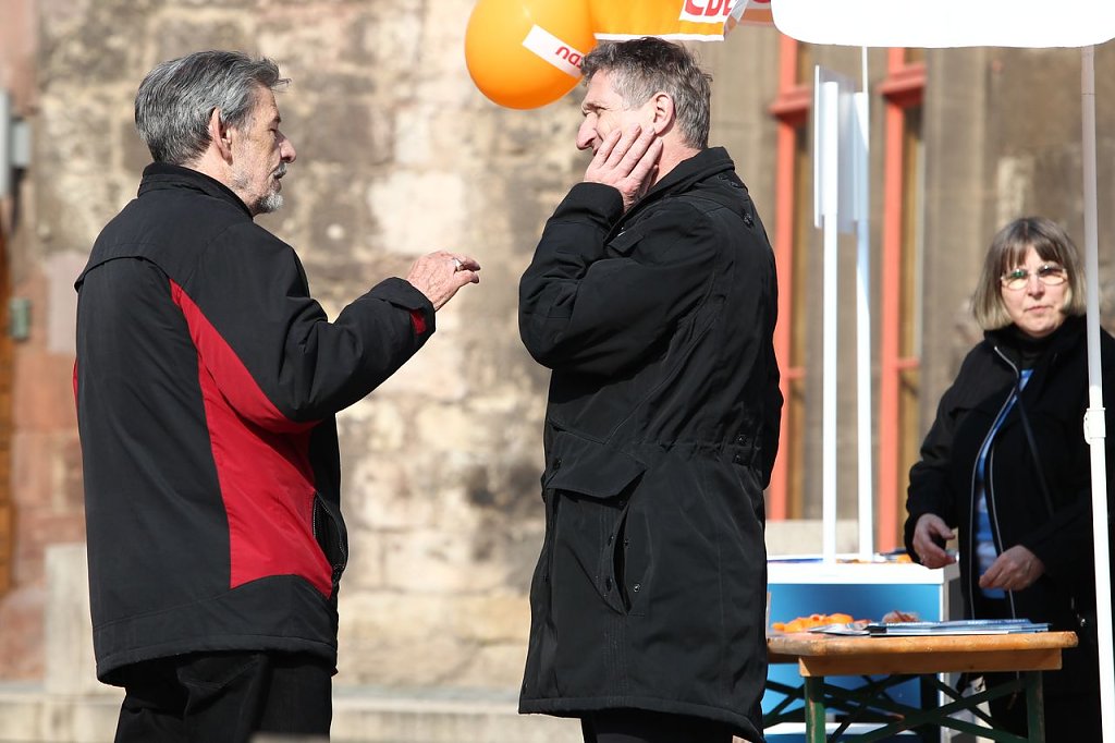 Die CDU und die SPD hatten sich mit ihren Infoständen samt Kandidaten in Position gebracht. Und so ergab sich für den Fotografen so manch kuriose Perspektive.
