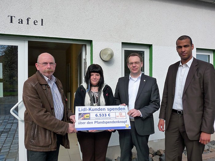 Seit Mai 2009 verfügen mehr als 5.000 Pfandrückgabeautomaten in den Lidl-Filialen über einen Pfandspendenknopf zugunsten des Bundesverbandes Deutsche Tafel e.V. Bei der Rückgabe ihres Leergutes können Kunden entscheiden, ob sie einen Teilbetrag oder den gesamten Pfandbetrag durch Knopfdruck an den Bundesverband Deutsche Tafel e.V. spenden möchten. Mit den Spendenbeträgen fördert der Verband Tafel-Projekte in den Bereichen: