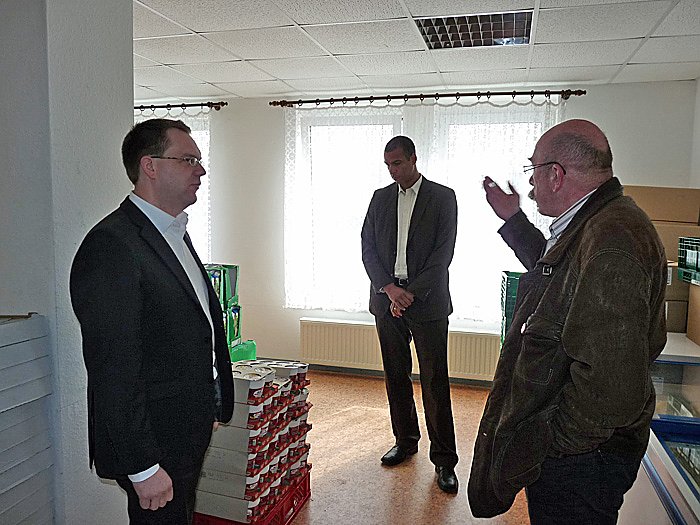 Lothar Hildesheim, Sandy Busse (Leiterin der Tafel), Stephan Becker und Marcel Wright stellten sich der Kamera von kn. Im Anschluss informierte man sich bei einem Rundgang.