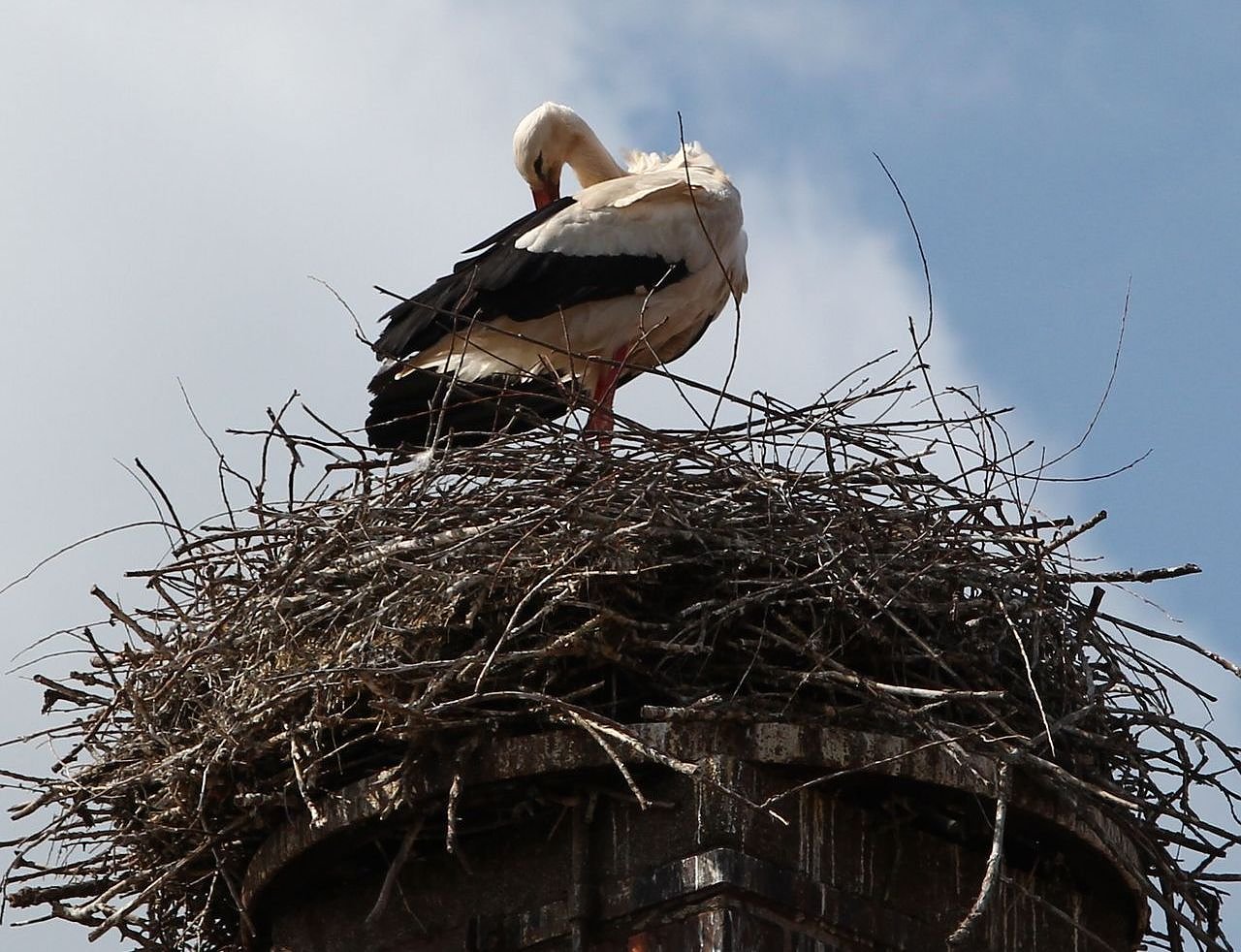 Dieser Storch scheint noch immer allein zu sein. Heute vormittag hatte er damit zu tun, um sein Federkleid in "Ordnung" zu bringen.