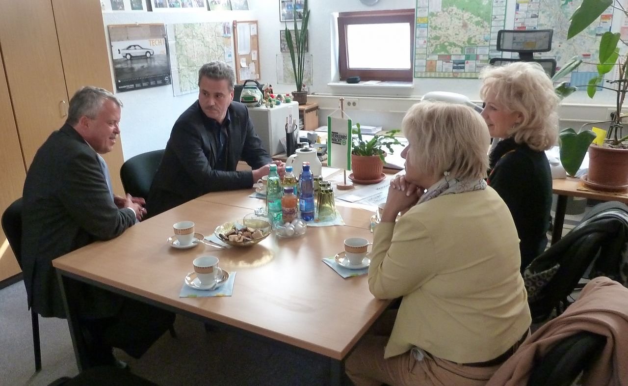 Es folgte ein reger Erfahrungsaustausch, wobei die Gäste über die vielseitigen Verkehrssicherheitsveranstaltungen der Kreisverkehrswacht informiert wurden. Zur Absicherung dieser Verkehrssicherheitsprojekte überreichten sie an den Vorsitzenden der Kreisverkehrswacht Nordhausen, Olaf Salomon, und Schatzmeister Dieter Köhler eine Spende in Höhe von 400 Euro aus dem Verein Alternative 54 der LINKE-Landtagsfraktion.