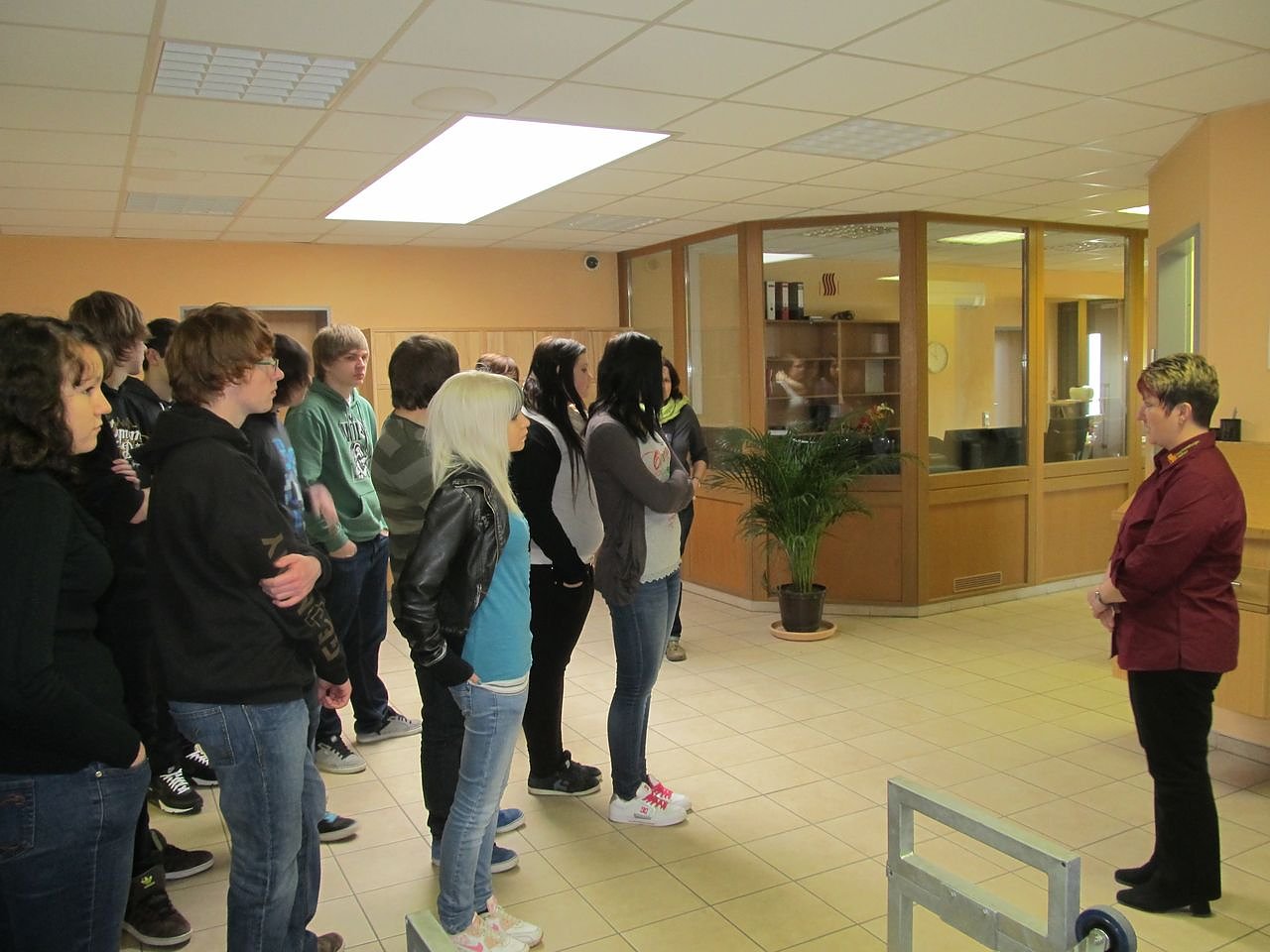 Herr Meier begrüße uns dort in den Räumen die sonst für Trauerfeiern genutzt werden. Nach einer kurzen Begrüßung und Einleitung begann der Rundgang durch das Objekt. Zusammen mit Frau Kandora, einer Mitarbeiterin des Krematoriums, wurde Station für Station der letzte Weg eines Menschen begleitet. Sehr einfühlsam versuchte Herr Meier dieses doch schwierige Thema zu vermitteln und aufkommende Fragen zu beantworten. Interessant war die Besichtigung der Ofenhalle und die Erläuterungen zu den technischen Abläufen, auch im Leitstand, wo die dort tätigen Kremationstechniker alles überwachen. Zum Abschluss des etwa drei stündigen Aufenthaltes dort gab es noch eine Gesprächsrunde mit den Schülern und Lehrern.