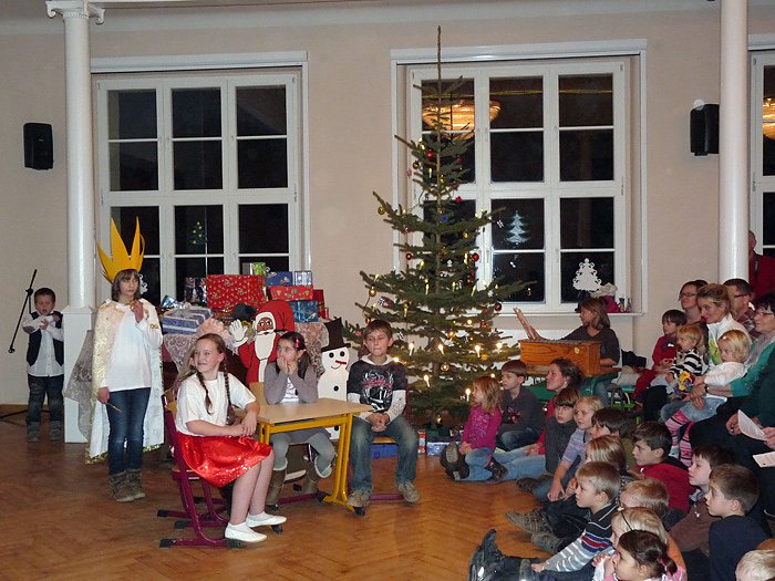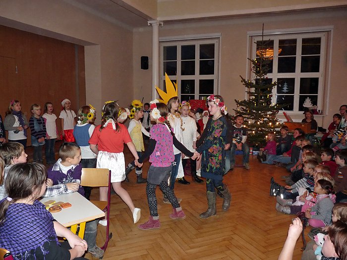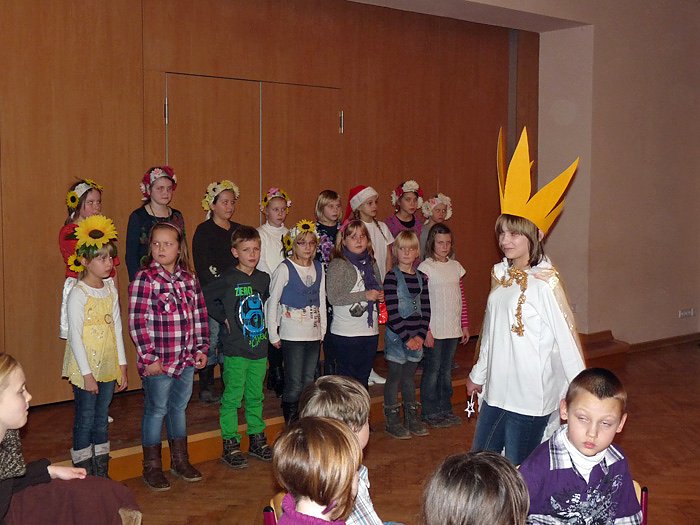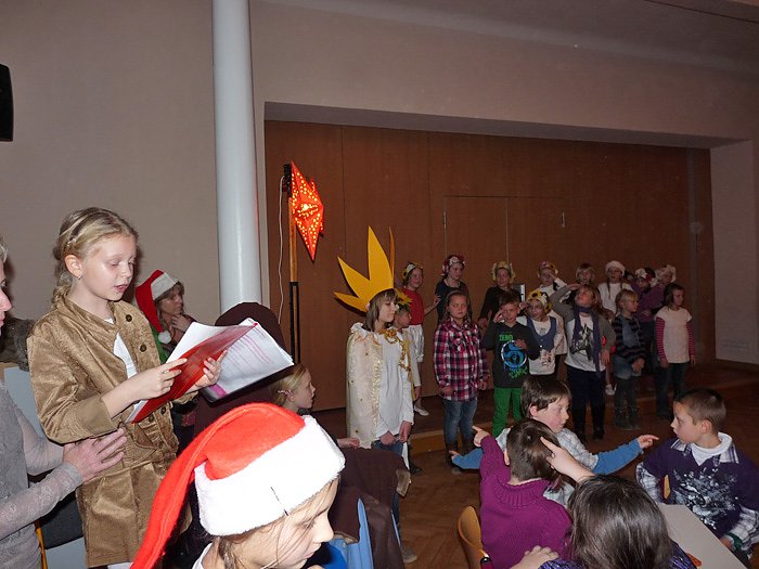 Höhepunkt der Weihnachtsfeier war wieder das Theaterstück. Es war wieder eine tolle Aufführung mit viel Musik, die da von den Schülerinnen und Schülern geboten wurde, ob Theatergruppe, Tanzgruppe oder Chor. Erzählt und gesungen wurde die Geschichte, "Der wundersame Stern". Die Kinder hatten sie mit Musiklehrerin Manuela Hohm einstudiert. Auch hier ging es eher nachdenklich zu, denn die Geschichte spielte auch von der Hatz der Menschen nach Geld. Es war eine großartige Aufführung und man darf schon gespannt auf das nächste Jahr sein.