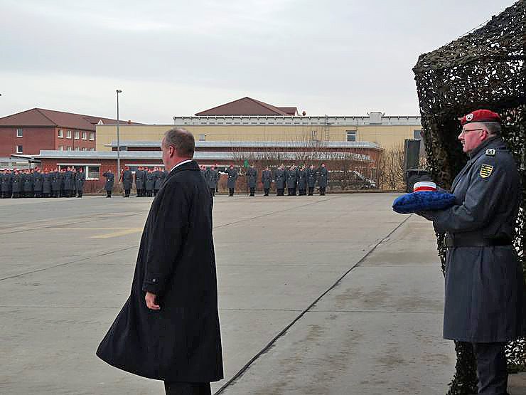 Innenminister Jörg Geibert überbrachte die Grüße der Ministerpräsidentin Christine Lieberknecht (CDU), die sich zu einem Truppenbesuch im Kosovo befindet. Thüringen stehe zu seinen Soldaten, sagte Geibert.