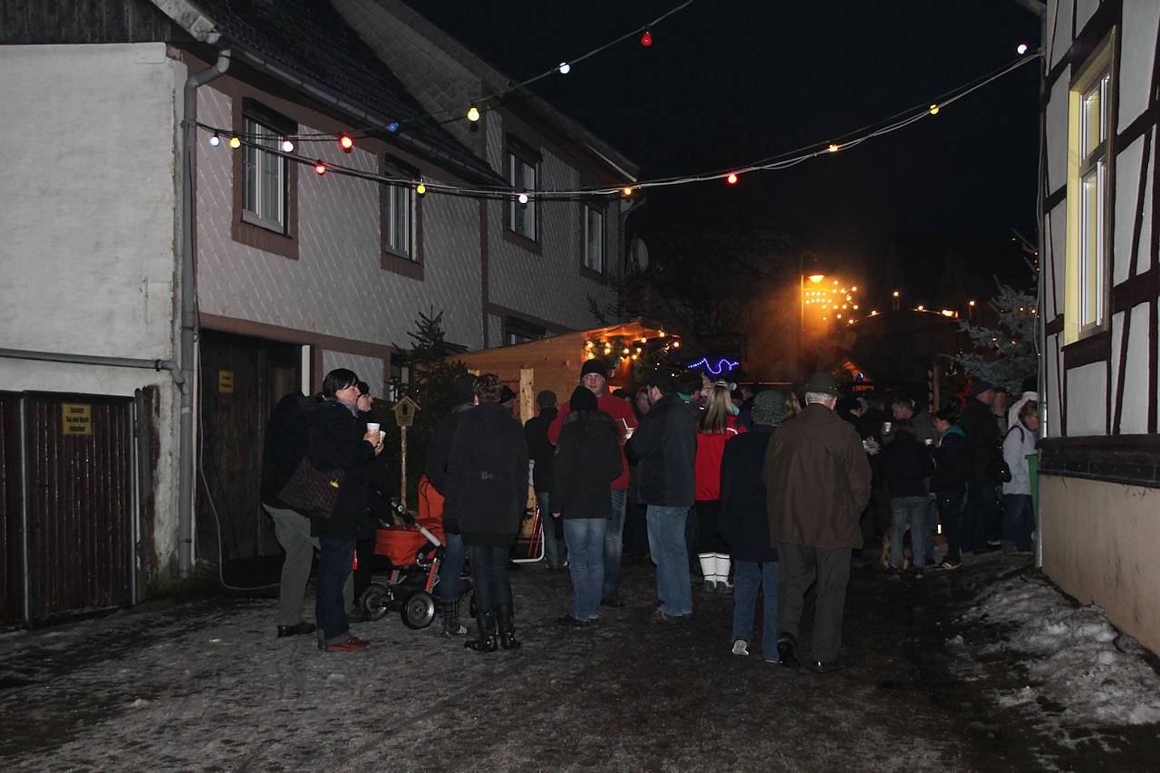 Weihnachtsmarkt in Herrmannsacker, eine Gemeinde im Landkreis Nordhausen. Es war schon dunkel als Karin Lehmann und Peter Blei durch einen großen Schwibbbogen auf einen kleinen "versteckten" Weihnachtsmarkt gelangten...