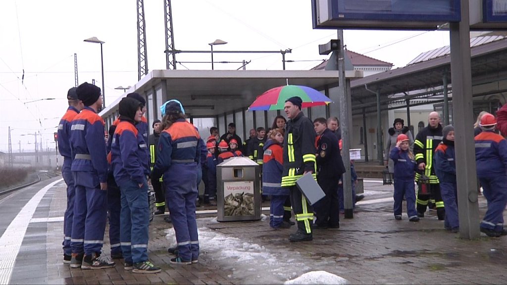 Kurz nach 11 Uhr kam der Zug aus Leinefelde am Bahnsteig 3 des Nordhäuser Bahnhofes an. Dort hatten sich Mädchen und Jungen von 16 Jugendfeuerwehren des gesamten Landkreises versammelt und teilten das Licht.