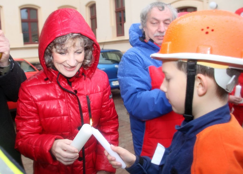 Das Symbol des Friedens und der Volkerverständigung holten die Nachwuchsbrandschützer traditionell am Vortag des Heiligen Abend vom Nordhäuser Bahnhof ab und brachten es zum Landratsamt, wo es schon zahlreiche Ehrengäste erwarteten. Und so überreichten die 113 Jungkameraden und ihre Helfer– stellvertretend für alle Feuerwehren – das Licht als Sinnbild der Verbundenheit und uneigennützigen Hilfe in einer Stafette an das Technische Hilfswerk Nordhausen, die Bergwacht Ellrich, die Betreuungsgruppe des Katastrophenschutzes und die Notfallseelsorge.