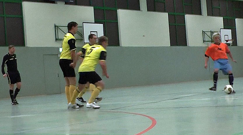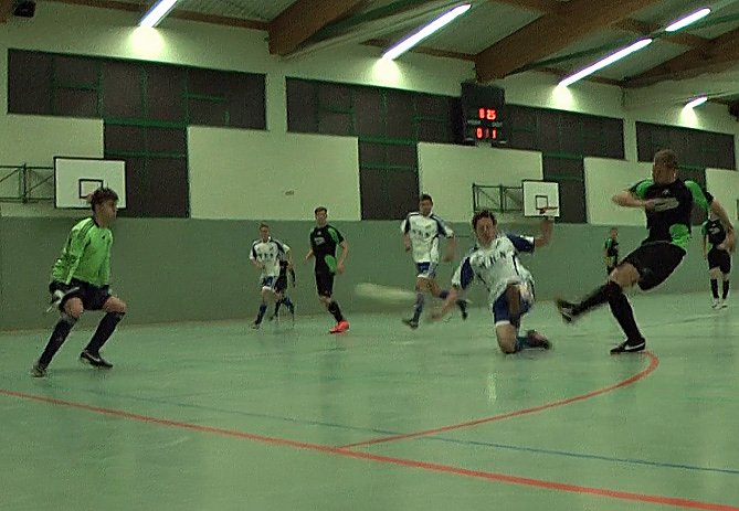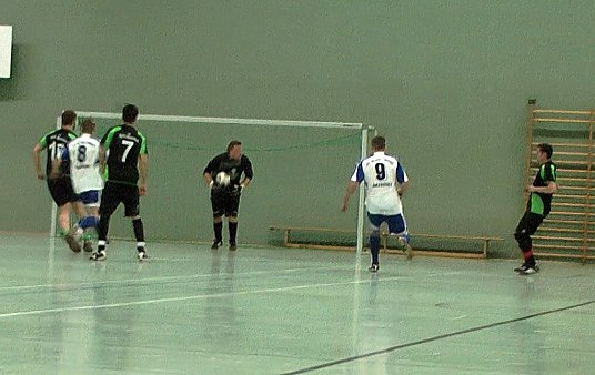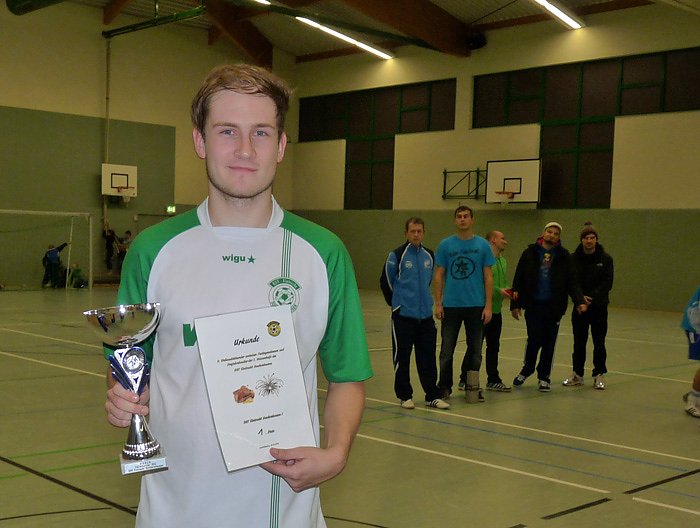 Immerhin konnten die Zuschauer 56 Tore bewundern, die an diesem Abend geschossen wurden. Übrigens mit "fatalen" Folgen für mache Torschützen. Jeder der ein zehntes Tor schoss, musste seiner Mannschaft "einen Meter" Bier spendieren. Leider hatte kn vergessen zu zählen, wie viele Becher Bier der Meter hatte. Der beste Torschütze vom letzten Jahr, Sebastian Caspar, spielte nicht mit so dieses Jahr der Weg frei war für Lukas Erdmann von der Eintracht aus Sondershausen mit sechs Treffern.