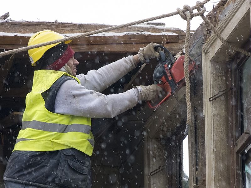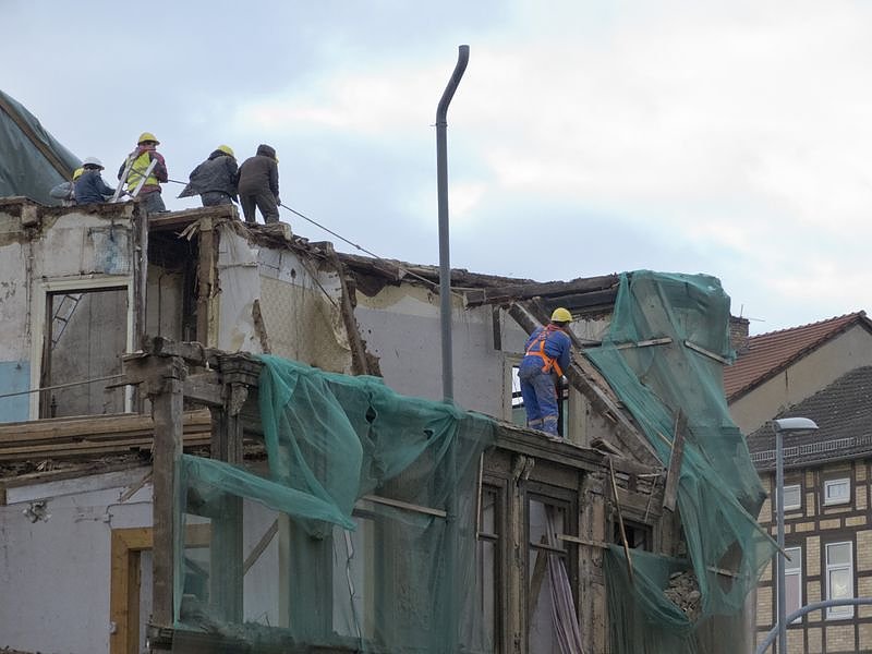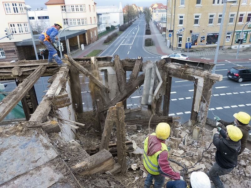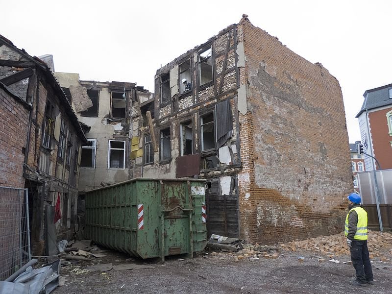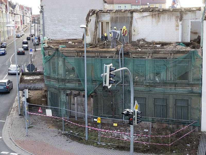 Seit dem 18. Dezember wird das einsturzgefährdete Gebäude an der Ecke Freiherr-vom-Stein-Straße/Oskar-Cohn-Straße zurückgebaut. Seit beobachtet Karsten Thorhauer das Geschehen...
