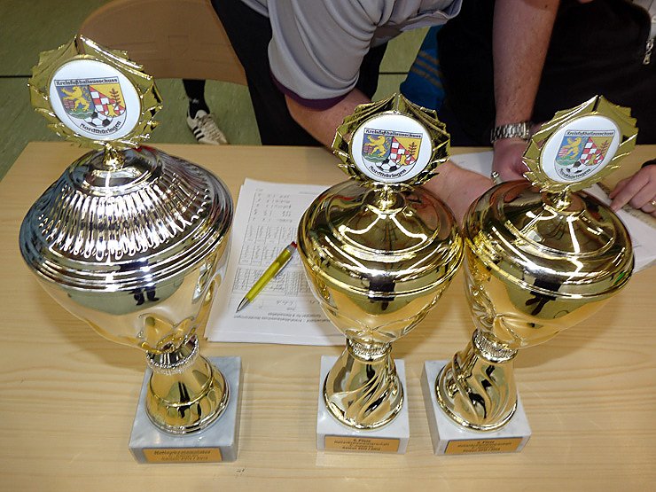Um diese Pokale ging es heute bei der C-Junioren (12 bis 14 Jahre) Endrunde um den Hallenmeistertitel. Qualifiziert hatten sich die SpG Sundhausen, SpG Großwechsungen, die SpG Nordhausen I, der VfL 1888 Ebeleben , die SpG Hauteroda, die SpG Roßleben, der BSV Eintracht Sondershausen und die SpG Greußen.