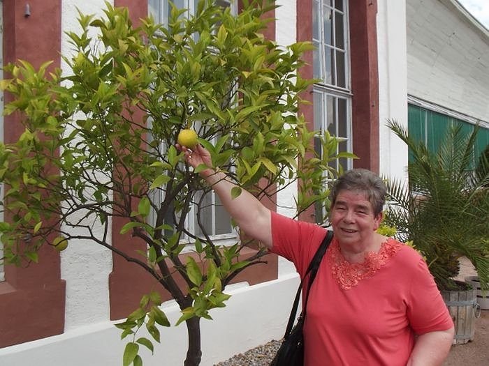 Sehr staunten wir über die verschiedenste Pflanzen- und Blütenpracht, die eigentlich eher in südlichen und wärmeren Gefilden heimisch ist. Und nun war es auch soweit, jetzt waren wir in dem Land wo die Zitronen blühen. Christa Groß präsentierte uns die zuerst entdeckte Zitrone an dem Zitronenbäumchen. Bis hin zu Palmen sind hier etliche exotische Pflanzenarten vertreten. Stolz präsentierte uns zum Abschluss Herr Brückner noch den Weinrebstock samt bald reifer Weintrauben. Auch Senioren aus unserer Gruppe haben zeitweilig in Bendeleben gelebt oder gearbeitet und so gab es auch interessante persönliche Erlebnisse, Erfahrungen und Geschichten.