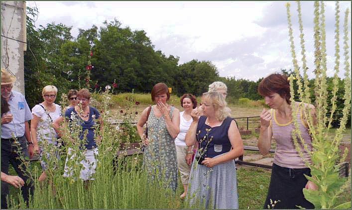Der Garten, derzeit noch ein liebevoll gepflegtes Gärtchen , wurde auch gleich anschließend besucht, und von Frau Peyer, der Betreuerin des Projektes, im Detail erläutert. Mit Frau Ehm und Frau Hache, Mitarbeiterinnen in Vereinsprojekten schufen die drei Damen unter fachlicher Anleitung von Herrn Dr. Neumerkel, Bendeleben, diese Kräutervielfalt. Eine kleine Ernte in Form von Duftkissen u.a. konnte dabei erworben werden.