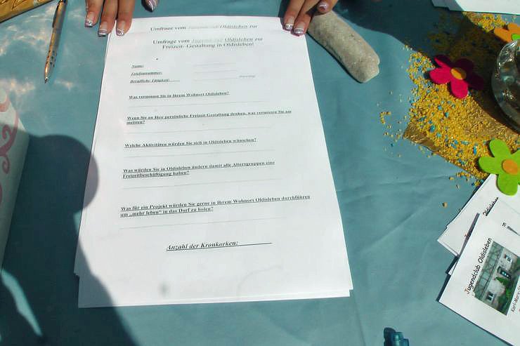 Der Jugendclub Oldisleben nutzte die Gelegenheit, eine Umfrage zu starten. Es wurden fragen zur Gestaltung der Freizeit gestellt. In einem Schätzspiel galt es zu raten, wie viele Kronenkorken befanden sich im Glasgefäß. Leider kennt kn auch die Lösung nicht.