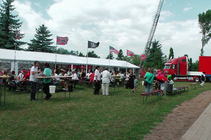 Vereinsvorsitzende Ramona Seidel-Wolf konnte sich freuen, denn bei schönem Wetter strömten die Besucher nur so herbei, auch wenn mal kurzzeitig ein paar Tropfen vom Himmel fielen. Schließlich hatte man ein tolles Programm auf die Beine gestellt. Nach dem Hissen der eigenen Fahne (vor 10 Jahren von Pfarrer Lucke geweiht) gab es noch kurze Grußworte. Bürgermeister Norbert Enke überbrachte die Grüße der Stadt Heldrungen und freute sich, es war eine gute Entscheidung, dass sich "Eastside" e.V. gegründet hatte.