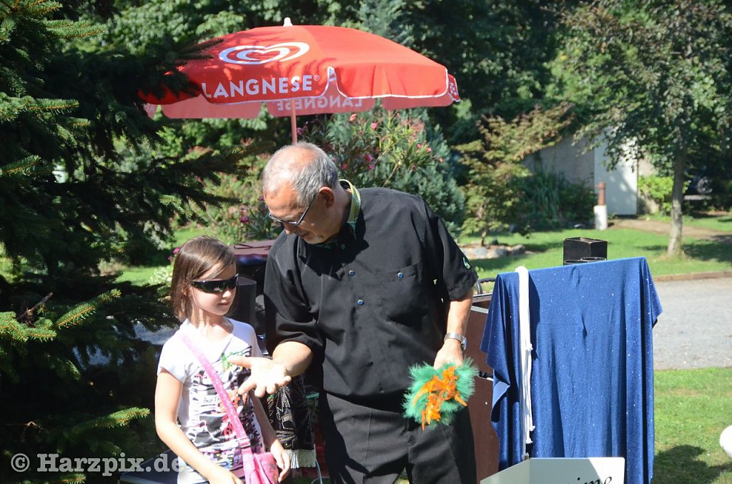 Und auch dieses Jahr warteten die Kinder wieder ungeduldig auf die Überraschung am Nachmittag. Waren es in den vergangenen Jahren Lamas oder Clowns, die für Spaß sorgten, so beeindruckte heute ein Zauberer (Herr Göppel) mit seinen Darbietungen.