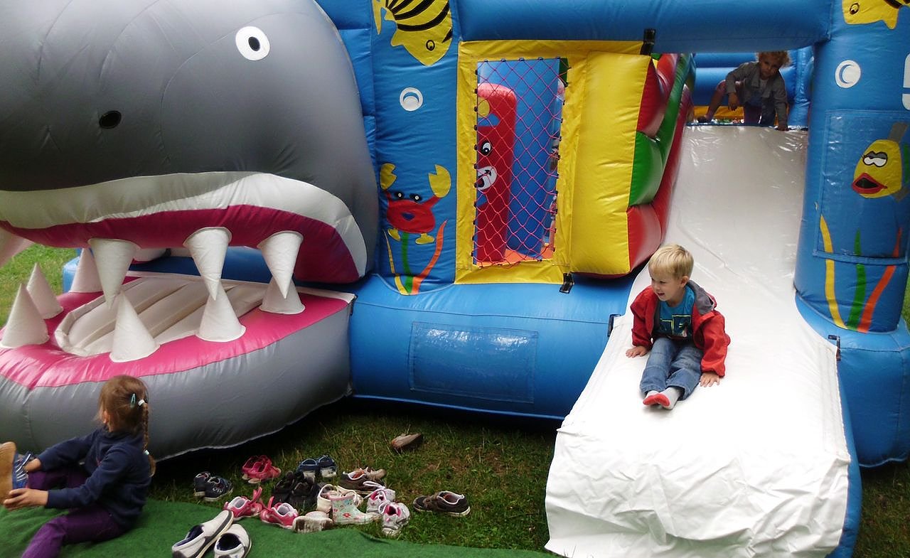 Wegen der kühlen Temperaturen mussten die Badehosen zwar in der Tasche bleiben, aber zum Glück stellte der Kreissportbund aus dem Projekt Seepferdchen eine Haihüpfburg für die Kinder zur Verfügung. Darauf konnten sie nach Lust und Laune springen und toben. Und somit waren alle wieder glücklich.