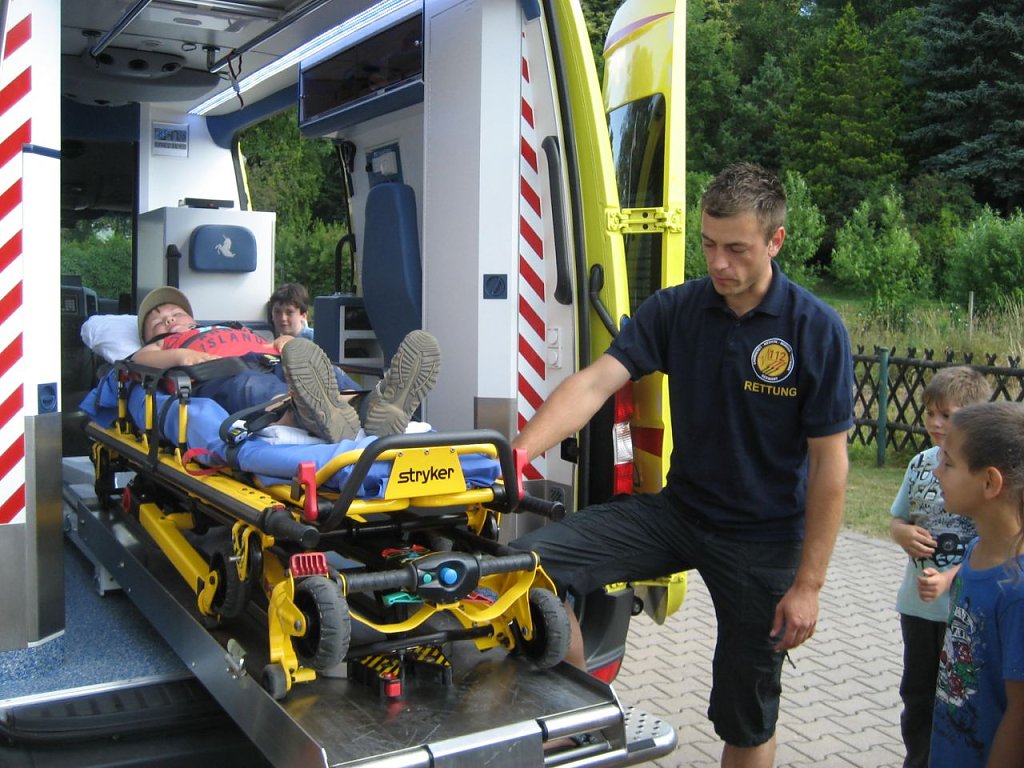 Unterwegs begegneten ihnen Fledermaus, Specht und andere Bewohner des Buchenurwaldes. Ein weiterer Tagesausflug führte uns in das verhexte Bau-Spiel-Haus nach Thale. Ob Trampolin oder Kletterberg, der Spaß war hier garantiert für jeden Zwerg. Weitere Höhepunkte waren u.a. der Besuch der Rettungsstelle Ellrich und des Rettungshubschraubers Christoph 37 in Nordhausen.