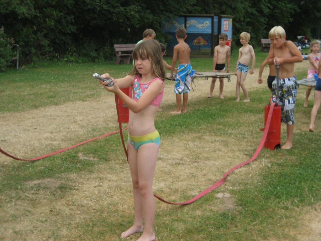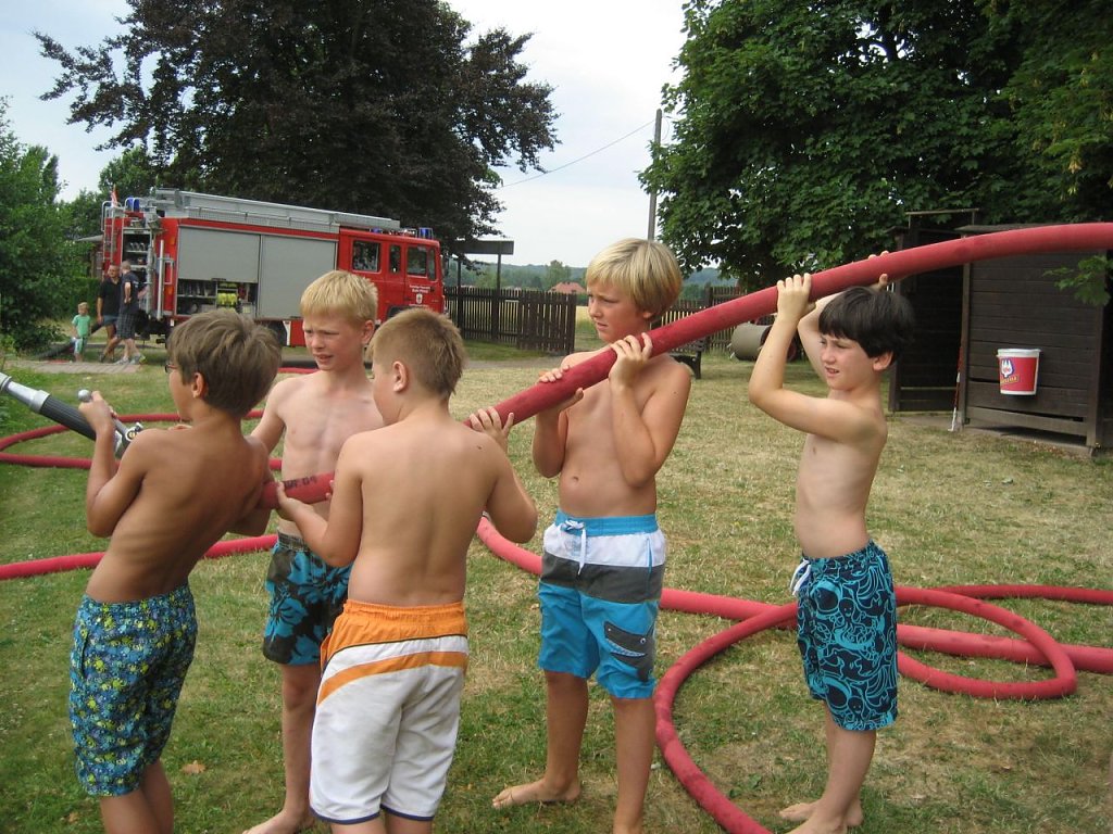 Schon zur Tradition geworden, veranstalteten wir als Abschluss dieser Ferientage, einen Erlebnistag mit der Feuerwehr Ellrich im Waldbad. An mehreren Stationen konnten die Kinder ihre Zielgenauigkeit, Schnelligkeit und Geschicklichkeit unter Beweis stellen. Mit einer Grillwurst und Getränken stärkten sich alle Kinder für den nächsten Wettbewerb. Zum Schluss, gab es noch ein tolles Schlauchbootrennen.