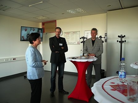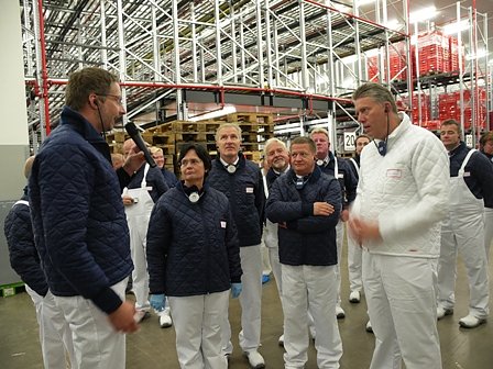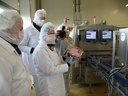 Geschäftsführer Kaufland Fleischwaren Heiligenstadt begrüßt. In einer Präsentation machten beide die Gäste mit dem Unternehmen Kaufland und dem neuen Werk vertraut. Christine Lieberknecht staunte nicht schlecht über die Zahlen, wie beispielsweise darüber, dass später einmal alle acht Sekunden eine Schweinehälfte zerlegt wird, das sind 4500 sind das am Tag!!