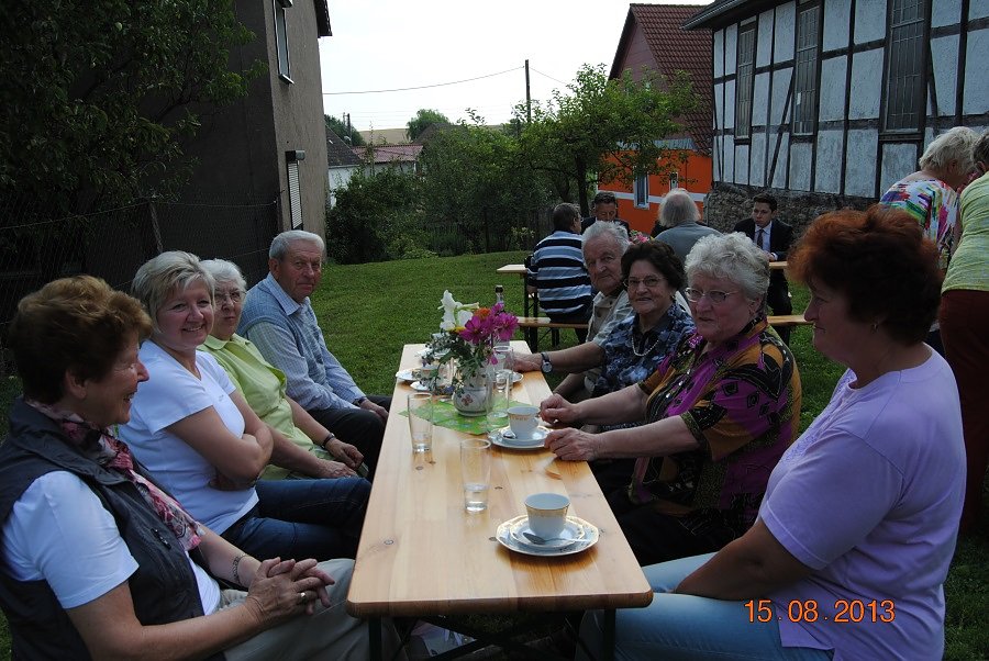 Staschewski verschaffte sich beim Rundgang einen Überblick über die bisher durchgeführten Arbeiten, die vorwiegend in Eigenleistung von den Einwohnern erbracht wurden. Jeden Mittwoch, 18:00 Uhr, ist Treffpunkt in der Kirche und regelmäßig finden Arbeitseinsätze am Wochenende statt um notwendige Arbeiten wie Malern, Verputzen, u. a. durchzuführen. Besonders beeindruckt war er, dass die Kirchendecke in schwindelerregender Höhe vorwiegend von den Frauen des Ortes neu gestrichen wurde. Viele Friedrichsthaler Einwohner nahmen bei herrlichem Sonnenschein an der Übergabe teil und ließen sich anschließend gemeinsam mit dem Staatssekretär den selbstgebackenen Kuchen sowie appetitliche Häppchen schmecken.